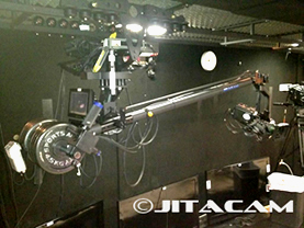 The background virtual “window” to the track uses three monitors (two 60 inch and one 103 inch) so the prerace set can be “transported” anywhere on the track. An inverted “Jitacam” crane hangs from the roof of the hotel and operates along a track, allowing floating and sweeping camera moves not possible in the network’s old mobile trailer. |