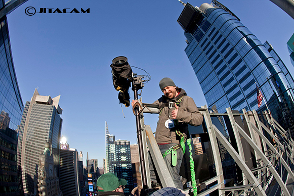 New Year's Eve in Time Square | Parker Bell rigging the mini head to cover the ball dropping on New Years Eve. |